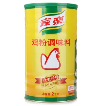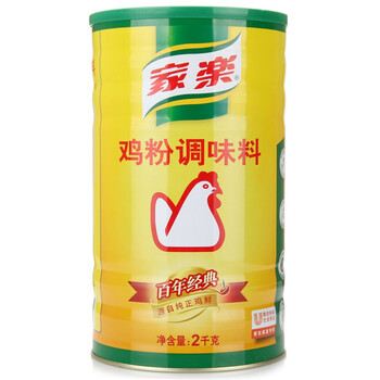 家乐 鸡粉调味料2千克 <br>规格:2kg <br>配料:食用盐,麦芽糊精,谷氨酸钠,淀粉,鸡肉粉,水解植物蛋白,精致鸡油(鸡油,丁基羟基因香精,二丁基羟基甲苯),白砂糖,食用香精,酱油调味料(酿造酱油,麦芽糊精,水解植物蛋白,食用盐,白砂糖,焦糖色,L-丙氢酸,琥珀酸二钠,5’-呈味核苷酸二钠),5’-肌苷酸二钠,5‘-呈味核苷酸二钠,香辛料。 <br>产地:北京大兴 <br>保质期:18个月 <br>贮存条件:阴凉干燥处常温储存(5-30℃),因本品极易吸潮,开罐后,应把胶盖盖好,并放在阴凉干燥处。 |