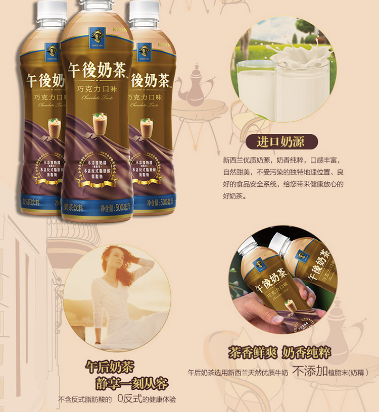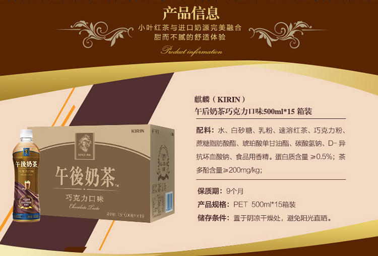 麒麟(KIRIN)午后奶茶 巧克力口味 奶茶 500ml*15 整箱装 (华润怡宝出品 奶茶饮料)